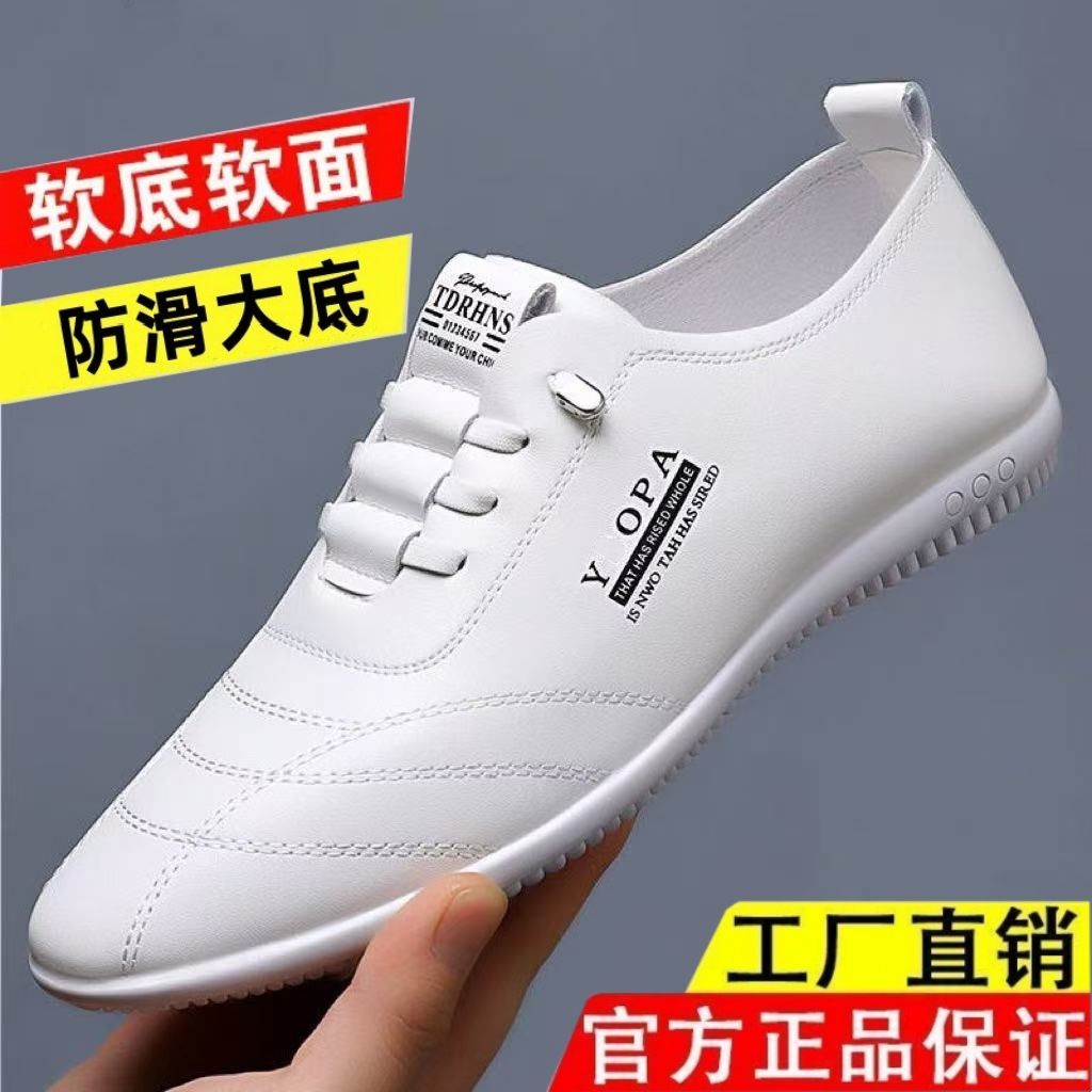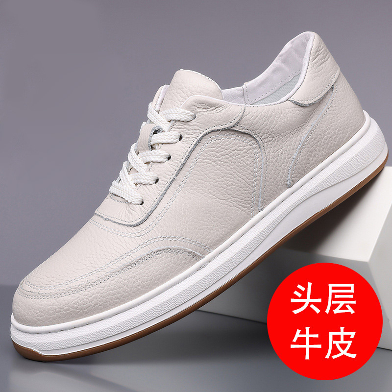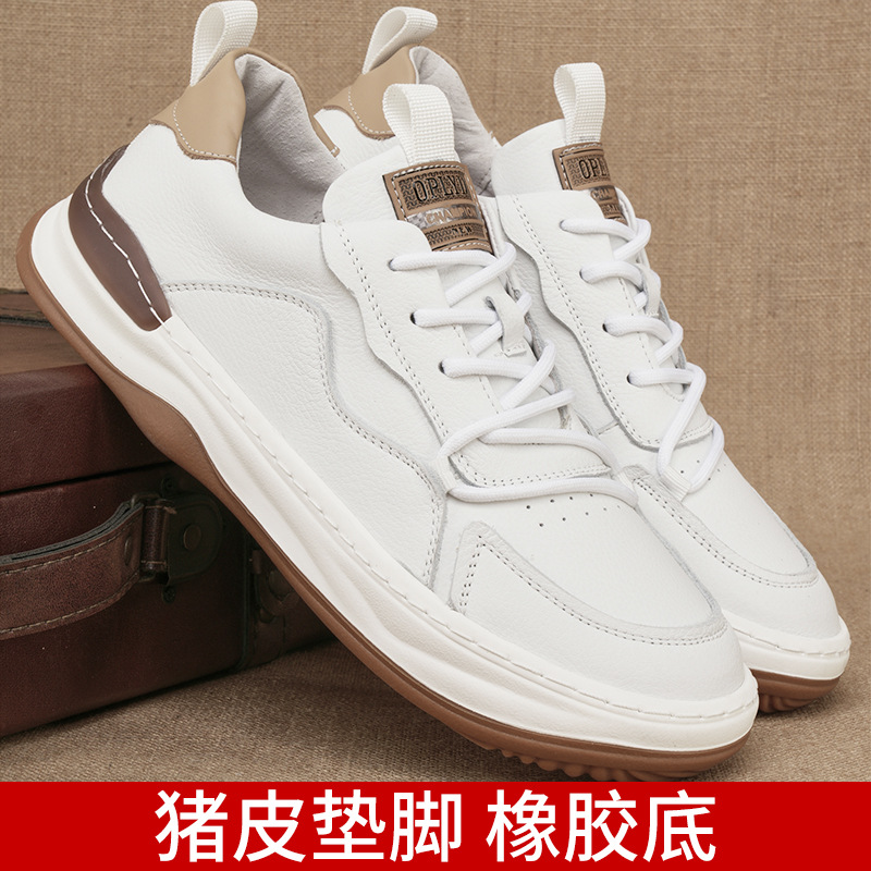 トップ層牛革2024秋の新型男性カジュアル靴ソフト底男型白靴靴靴男靴