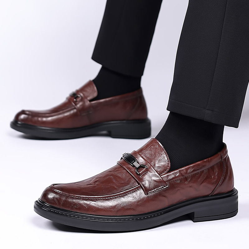 9810男性靴楽福革靴本革ビジネスカジュアル靴春低助セット足頭層牛革面靴一足