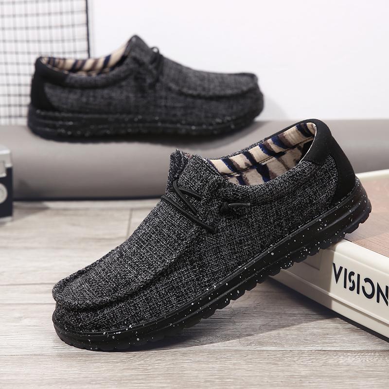 9189男性靴楽福靴は板靴キャンバス靴を踏んでいます。