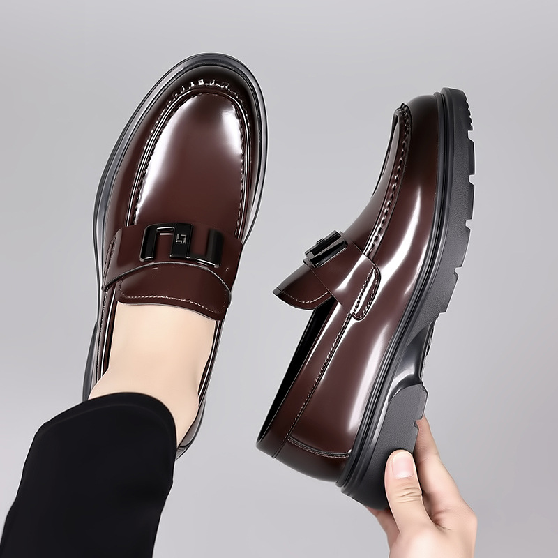 男性靴春秋厚い底鏡面カジュアル革靴ビジネス正装英倫風楽福靴男性一足靴