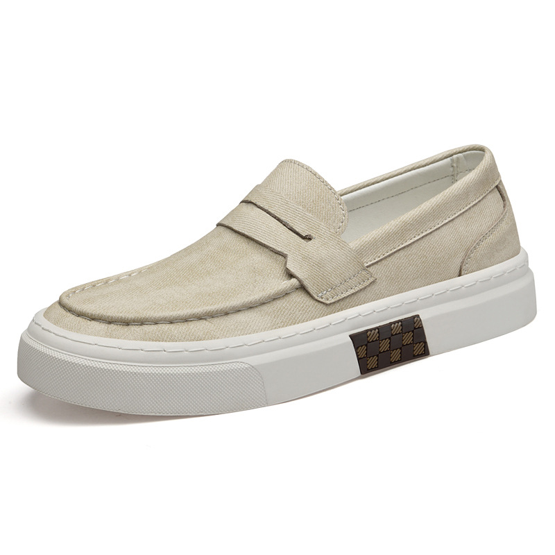 2025サイズの男性靴楽福靴韓国版ファッションカジュアルファッションファッション男性の通気性が軽くて怠け者の足が軽いキャンバス靴を漕ぐ
