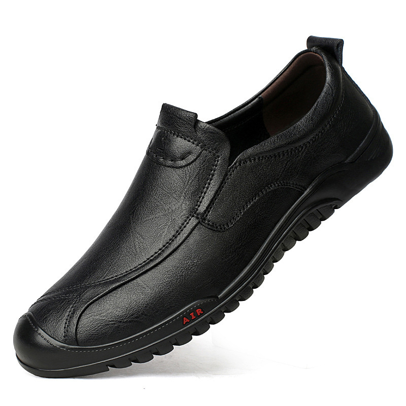 男性本革牛革ビジネスカジュアル男性靴滑り止め通気性中高年ソフト底父革靴一足漕ぎ男性靴