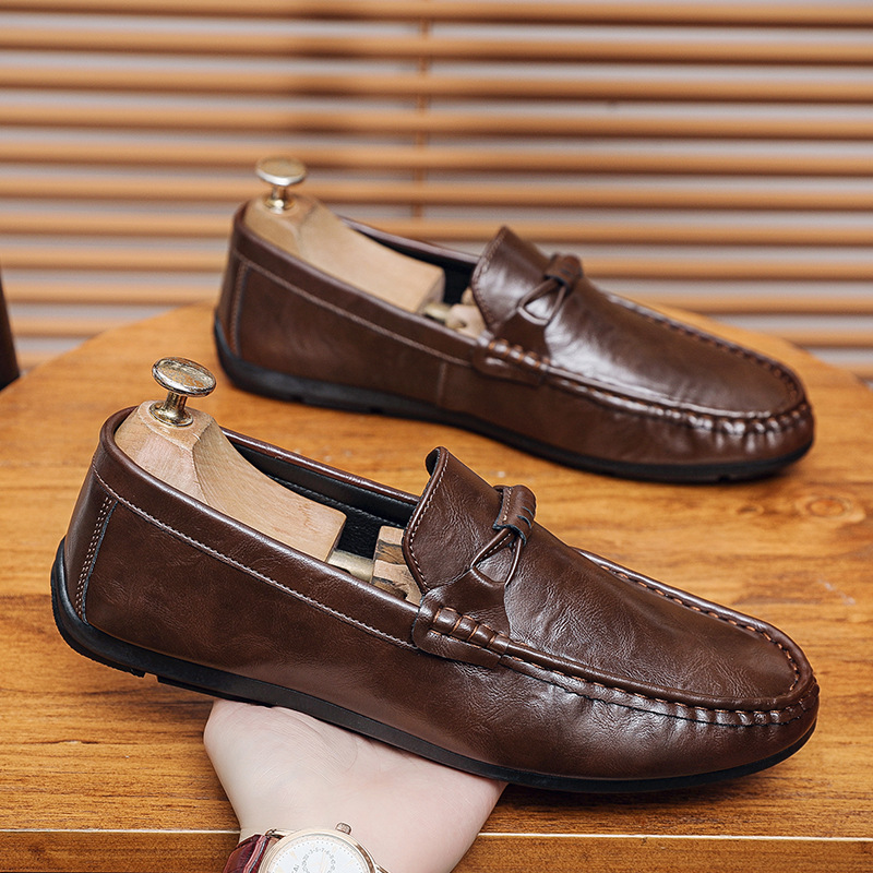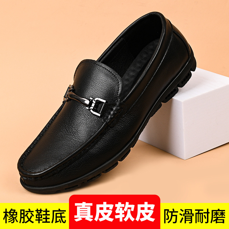 ソフト通気2024新型単層真皮豆靴快適セット足底滑り止め男革靴メーカー卸売り