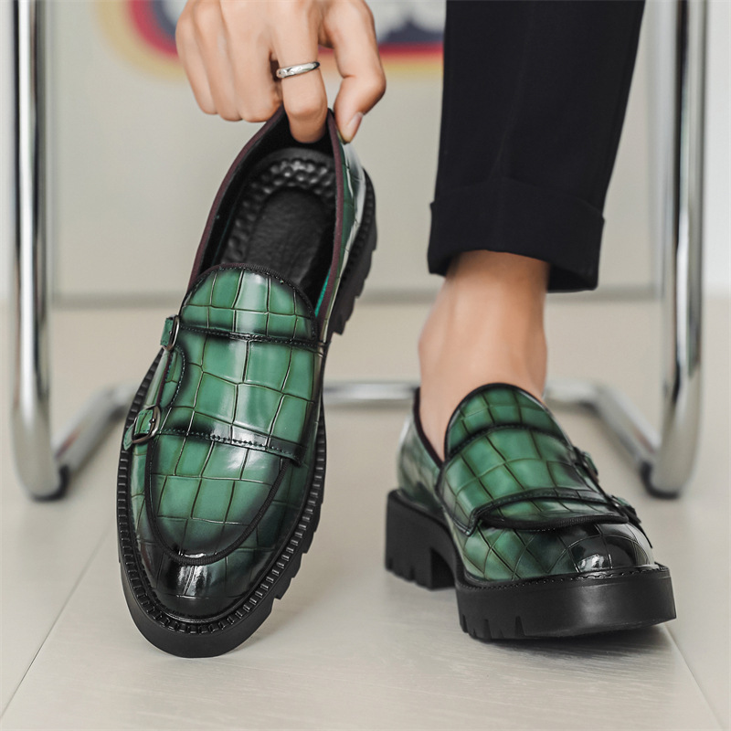 8670 ローファー スリッポン ファッション カジュアル レザーシューズ メンズ 厚底 身長アップ ダブルバックル ローファー