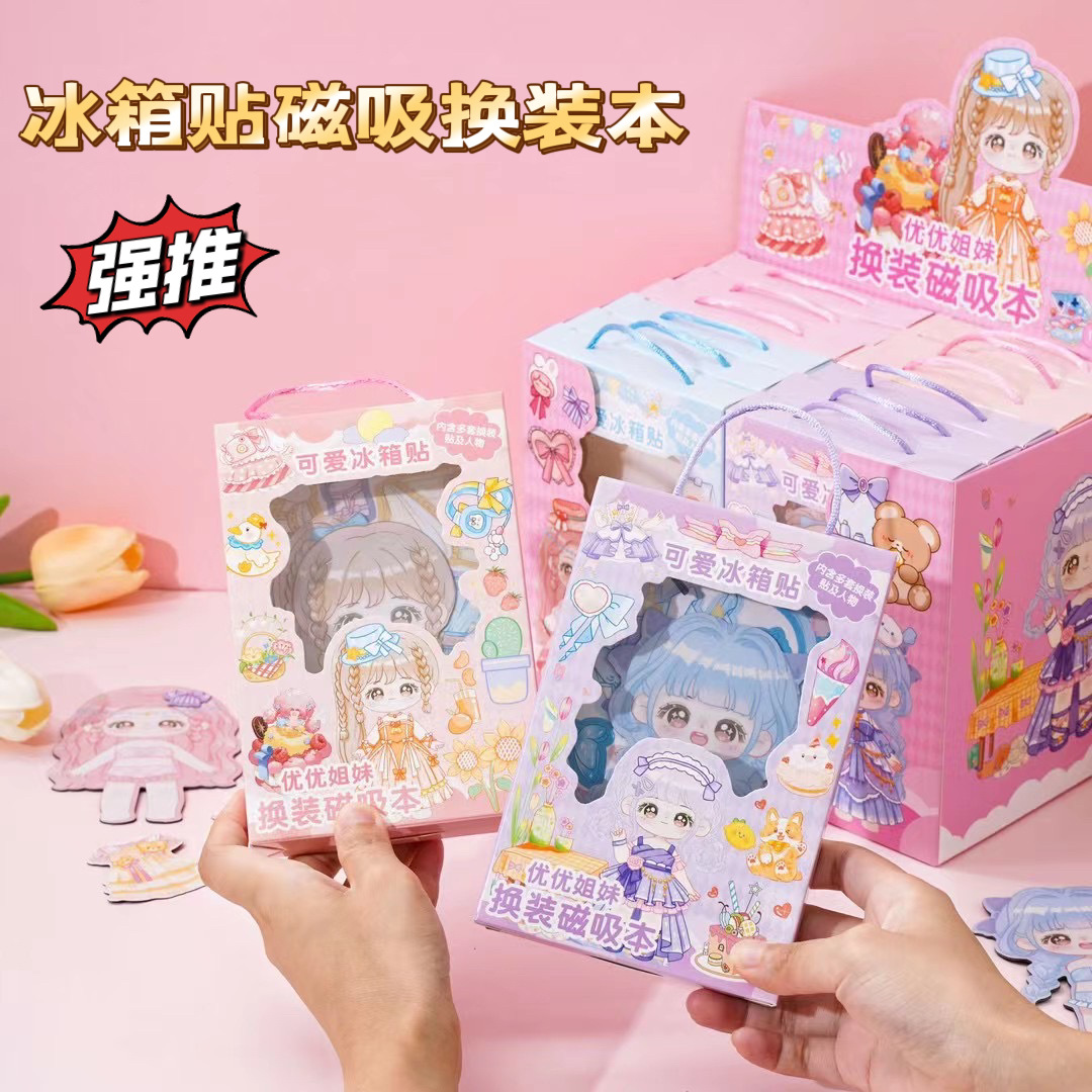 優優姉妹の冷蔵庫にマグネットを貼って着替えます。