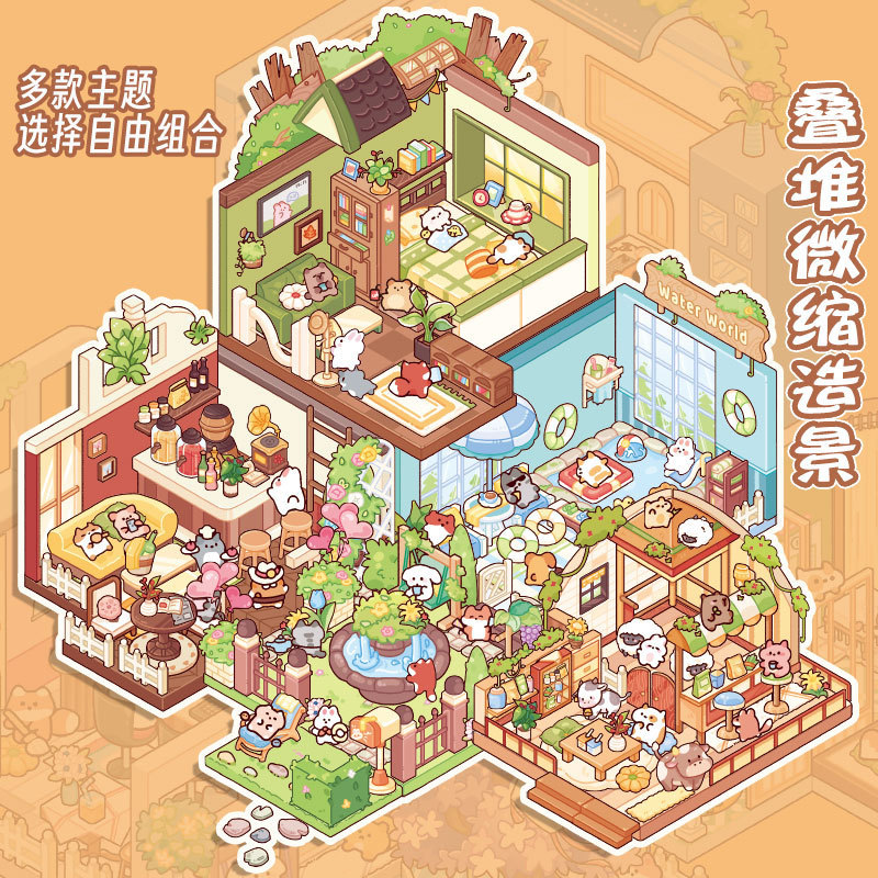 紙さんミニチュア造景シール浮生夢未央シリーズ積み重ね立体小屋子供手帳diy玩具