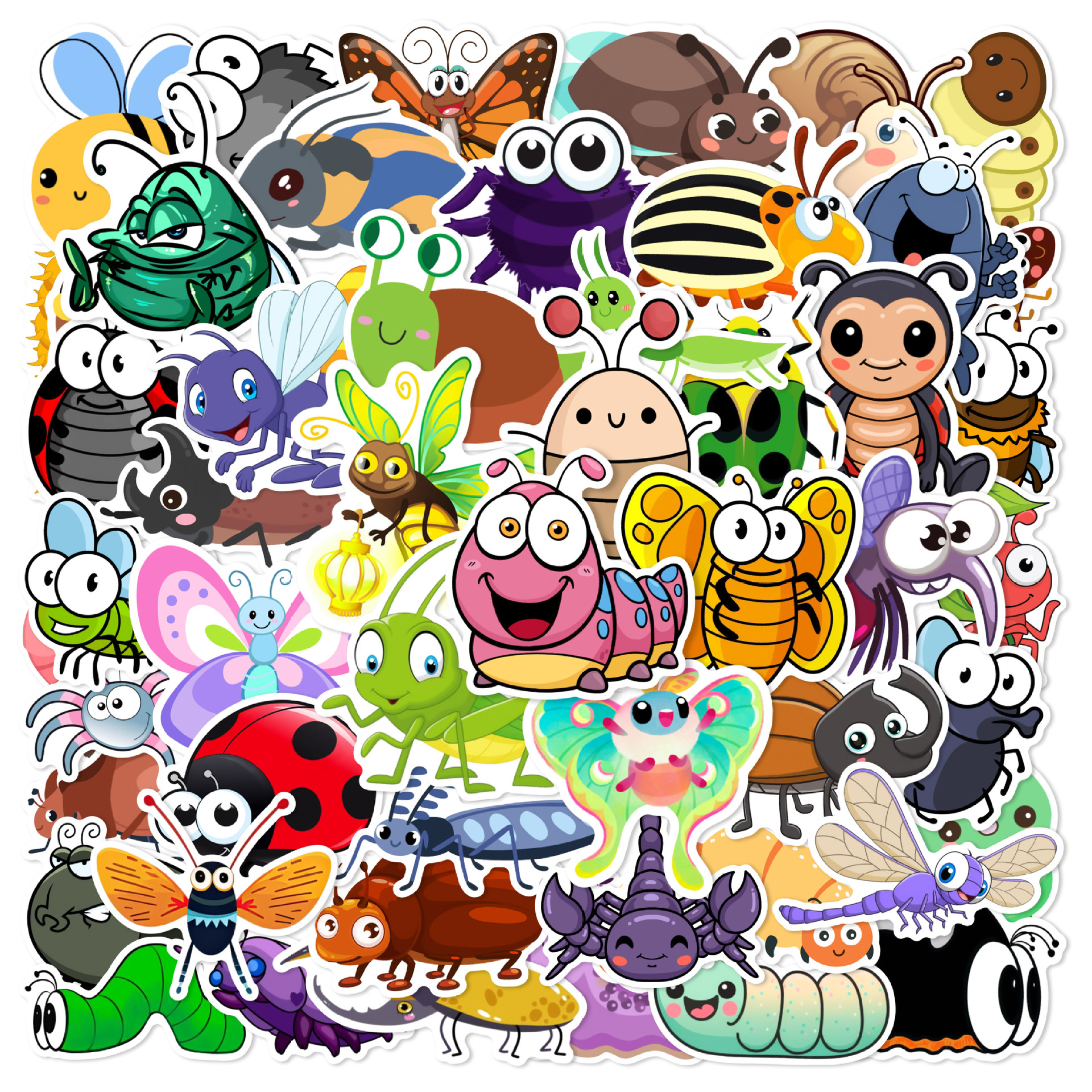 50枚のかわいい虫の落書きシールのおもちゃのコップの収納箱の机の装飾は重複しません。