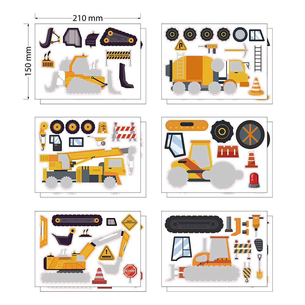 6枚子供知育diy玩具工事車パズルシール創意吊り機ショベル手作り装飾貼り絵