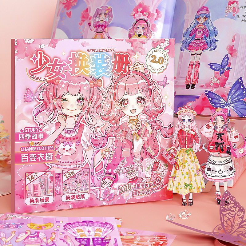 色の着せ替えシールの美しい王女の化粧シールの女の子の子供の人形の漫画の手作りシールの本