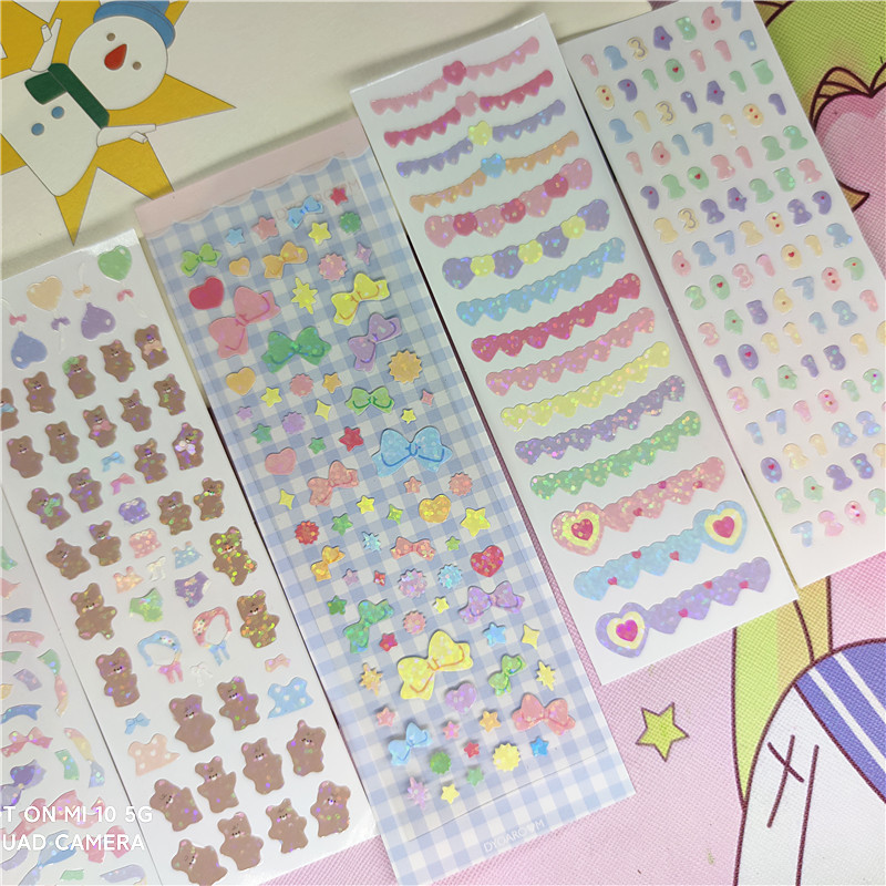 韓国dyoaromデジタルハート型かわいい風船熊スパンコールレーザーシールins追星携帯電話装飾シール