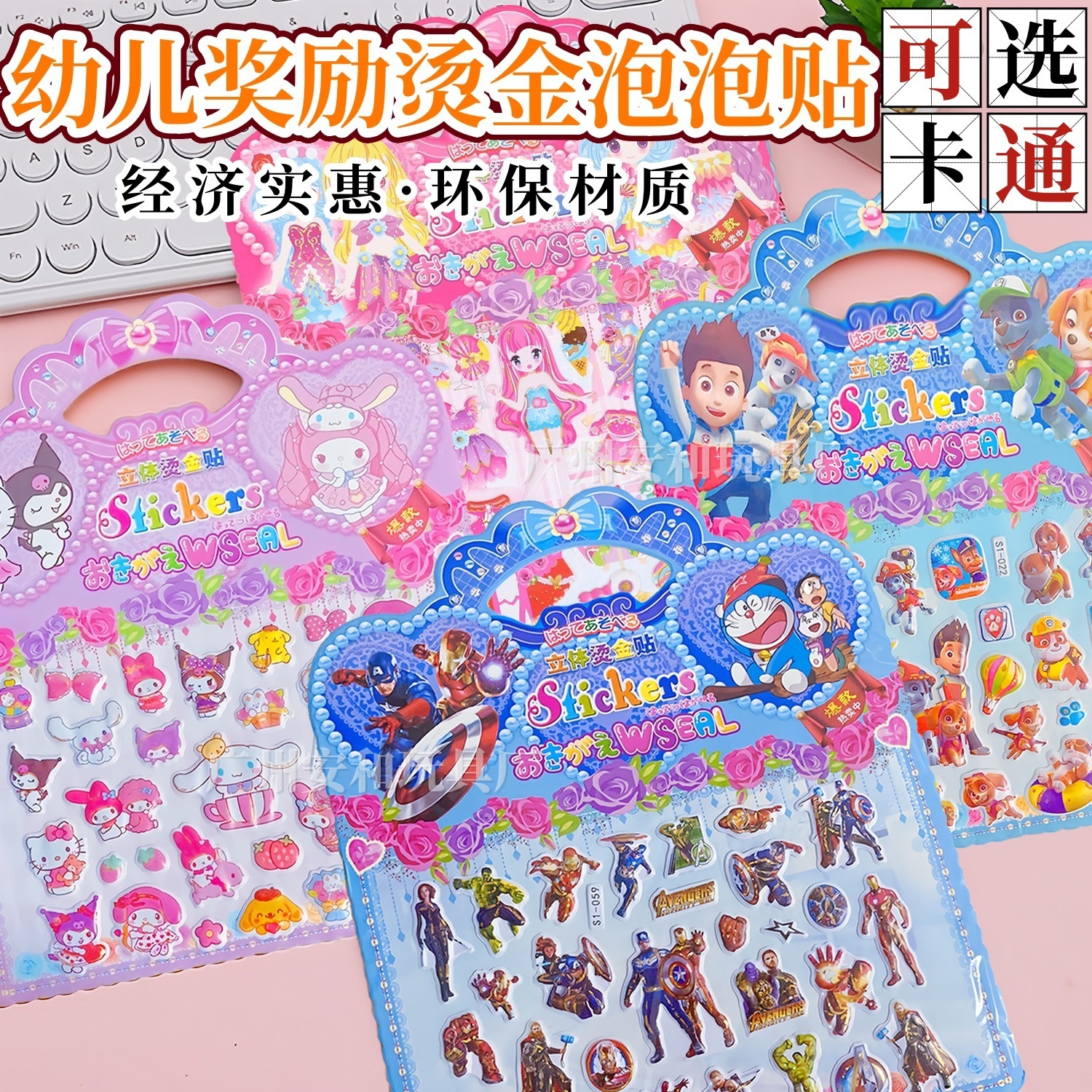 子供用ステッカー自己接着漫画プリンセス着せ替えステッカー箔押し3d立体奨励バブルステッカー幼児祝日プレゼント