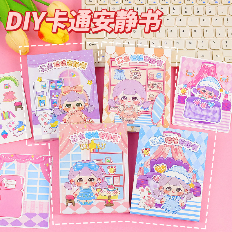 かわいいお姫様人形ボックス静かな本漫画の女の子の着せ替えシール