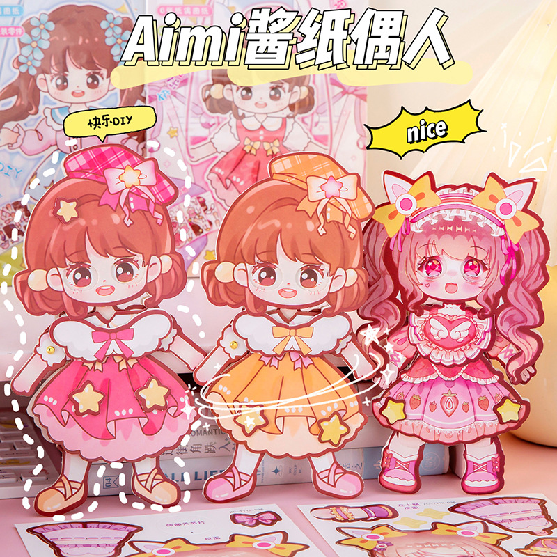 子供の手作りdiy無裁断セット玩具Aimiちゃんの紙切れ人静かな本の女の子の知育着せ替えシール