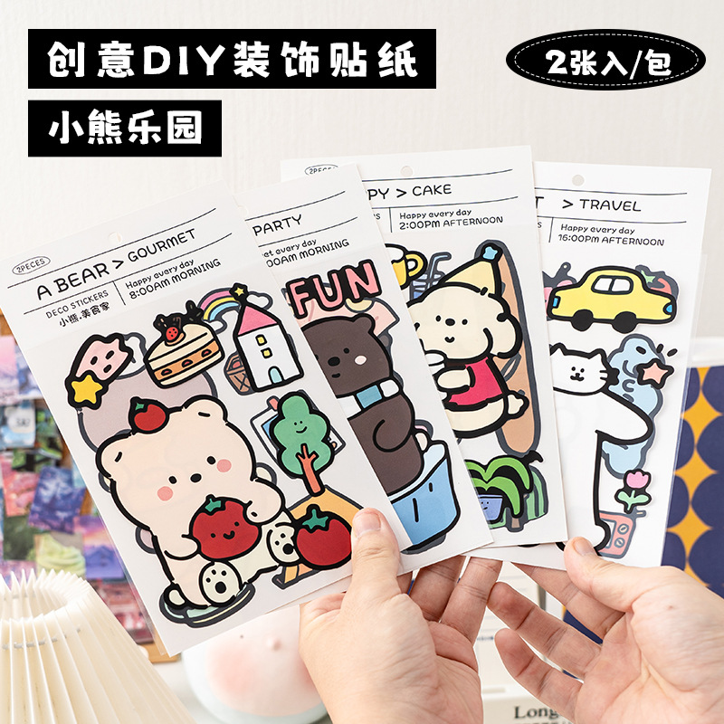 クリエイティブアニメ装飾シールdiy素材ins風手帳クロスボーダーかわいいベアーpet子供手帳ステッカー