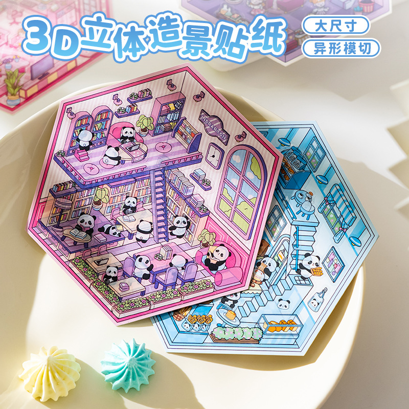 韓国系アニメ3d造景シールかわいい視覚立体小屋小紅本解凍造景シーン手帳シール