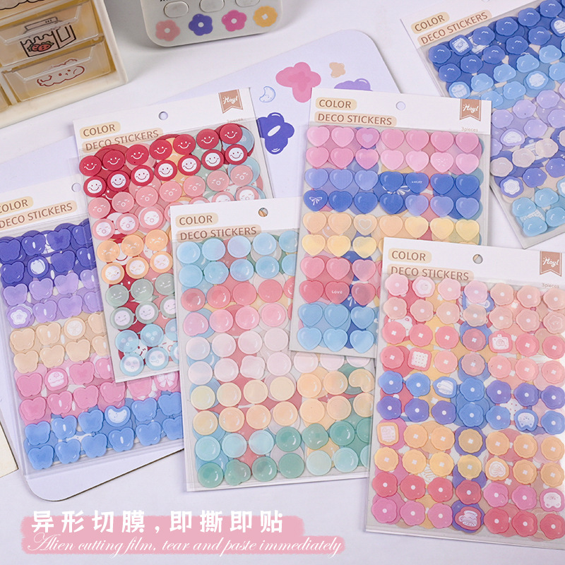 バブルマートシリーズのステッカーは見た目も絶妙で、複数のシーンに適したステッカーで、カットフィルムが付属しており、手作りの文具を簡単に剥がすことができます。