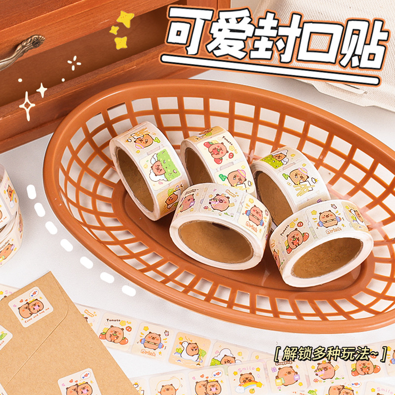 カピバラのシールはアニメパンダの装飾ラベルを貼っています。