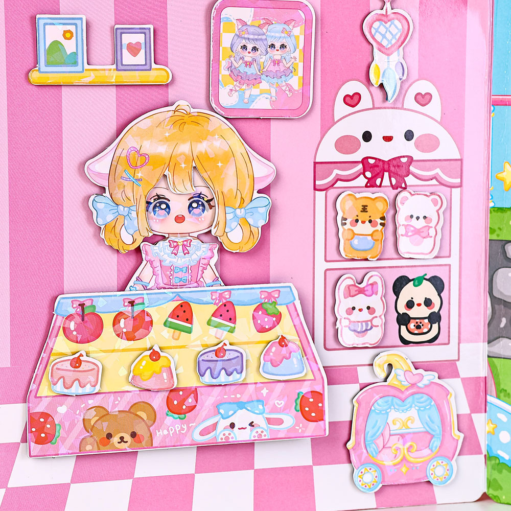 趣味の着せ替えショーのステッカーの本の少女はかわいい女の子の王女のタンスの手帳の装飾の素材を飾って静かな本を貼ります。