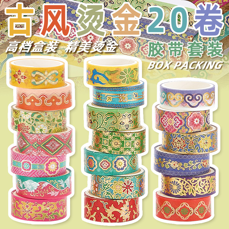 敦煌風箔押しステッカーセットと和紙テープ、外国貿易供給、古風装飾DIY手帳テープ