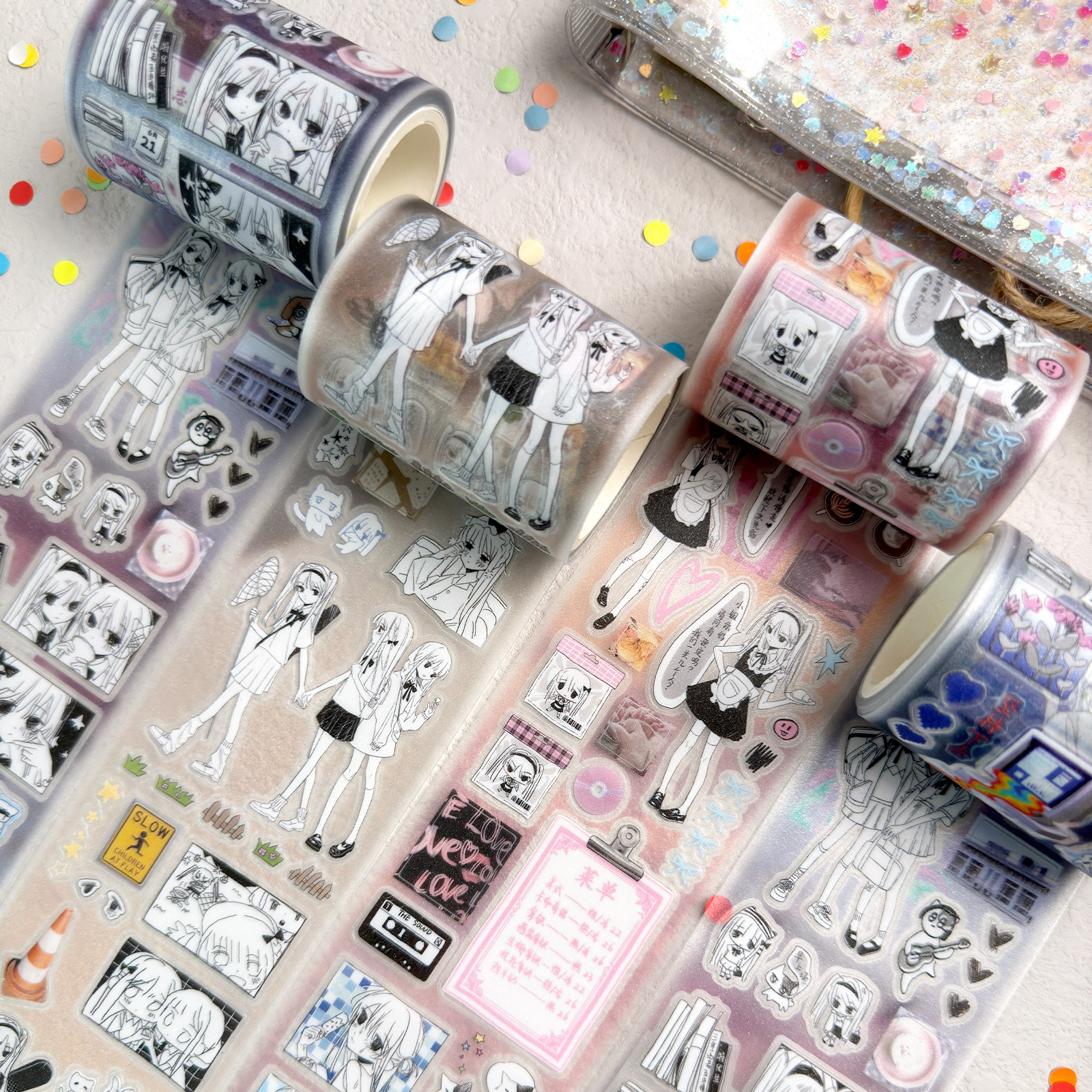 AGUGUパッチワークの時系列ダイカットテープpetステッカーロールかわいい夢核落書き基礎フラッシュテープ