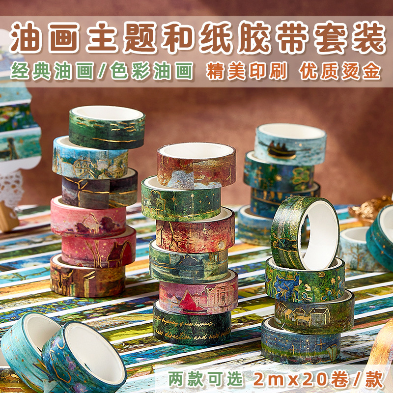外国貿易供給 クラシック油絵カラー 油絵風カラー和紙テープ DIY手帳デコレーション クロスボーダーステッカー