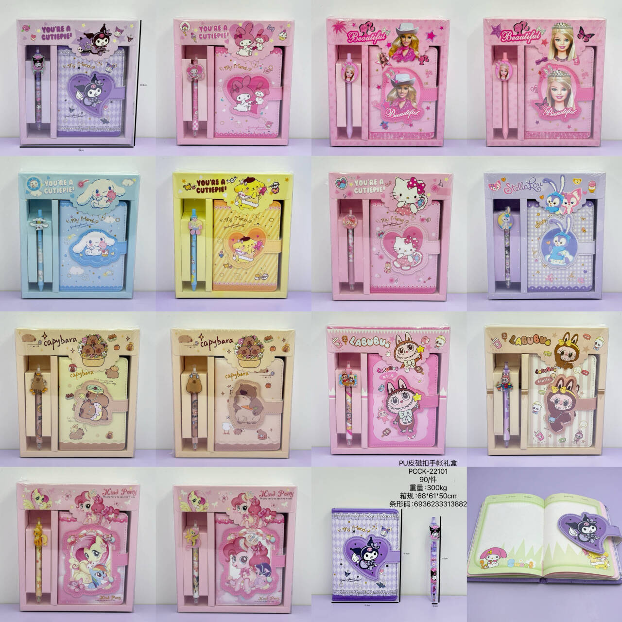 22101クリエイティブ学生pu磁気ボタン手帳カラーページ手帳文房具手帳セットギフトボックス日記帳
