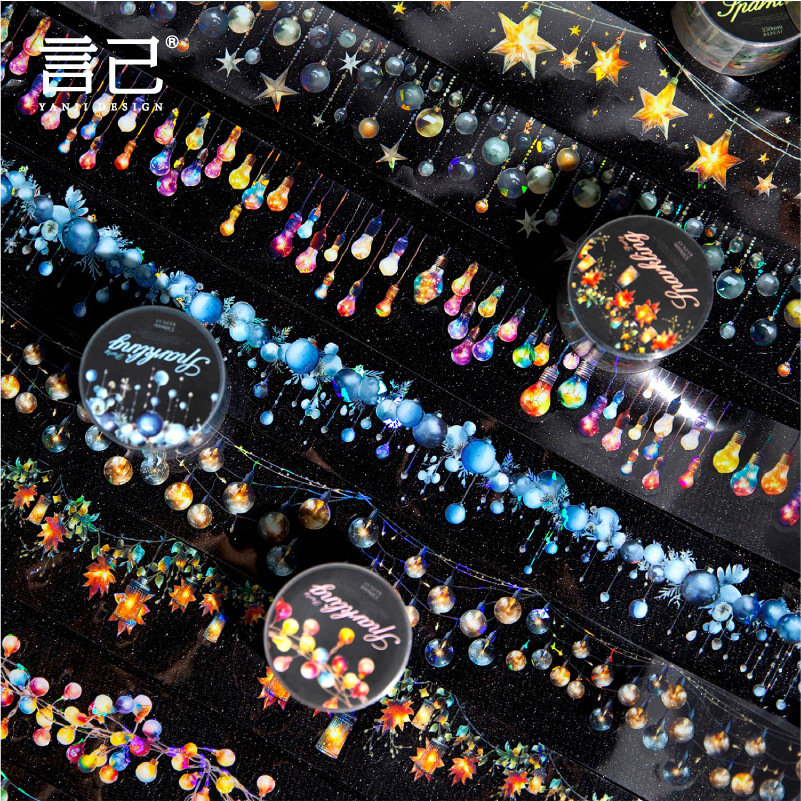 言己閃光パーティーシリーズpet箔押しテープ花飾り星素材貼り画8種類