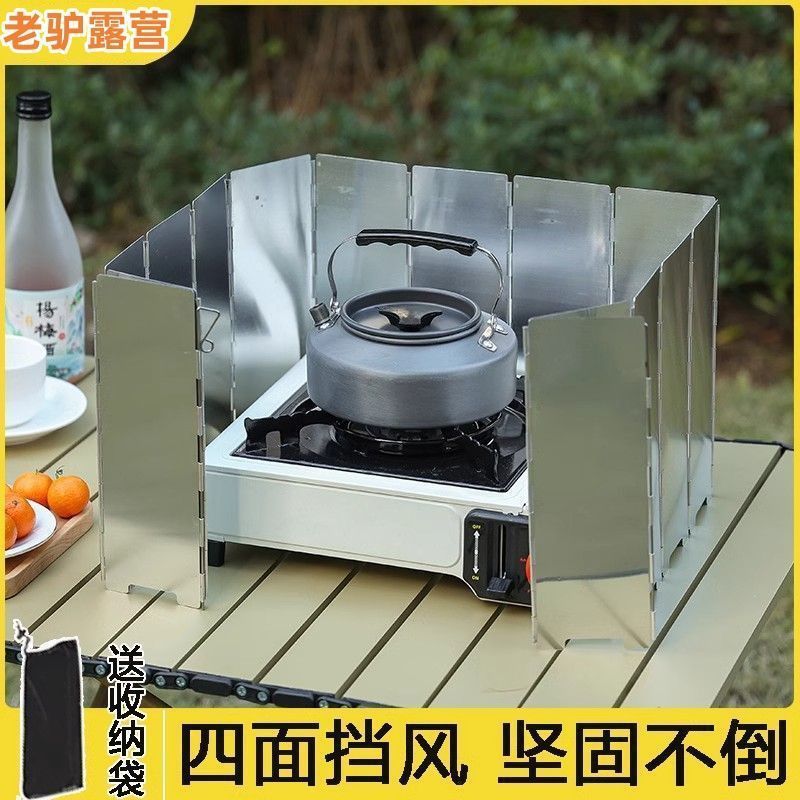 屋外キャンプ用コンロカセット式オーブンウインドブレーカー10枚大型防風折り畳み収納携帯炉ヘッドアルミ製