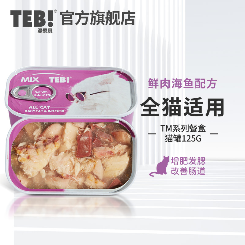 Teb湯恩貝輸入猫缶六種魚九種肉小食缶成幼猫湿食糧小方箱猫間食