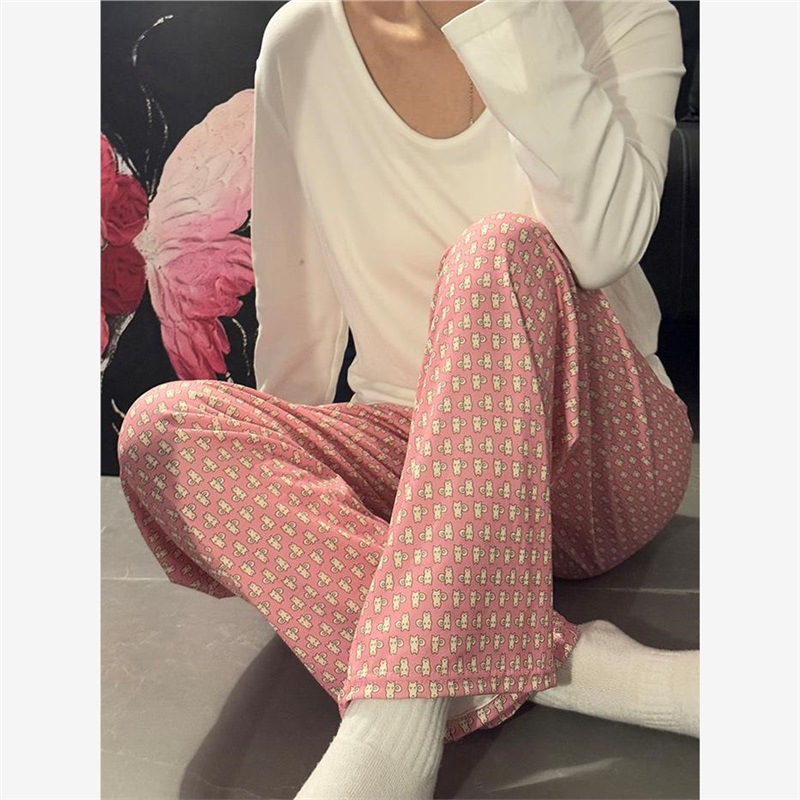 韓国ガールかわいい猫プリントパジャマ女性の夏の新しい大きいサイズルーズカジュアルウォーキングパンツホームパンツ