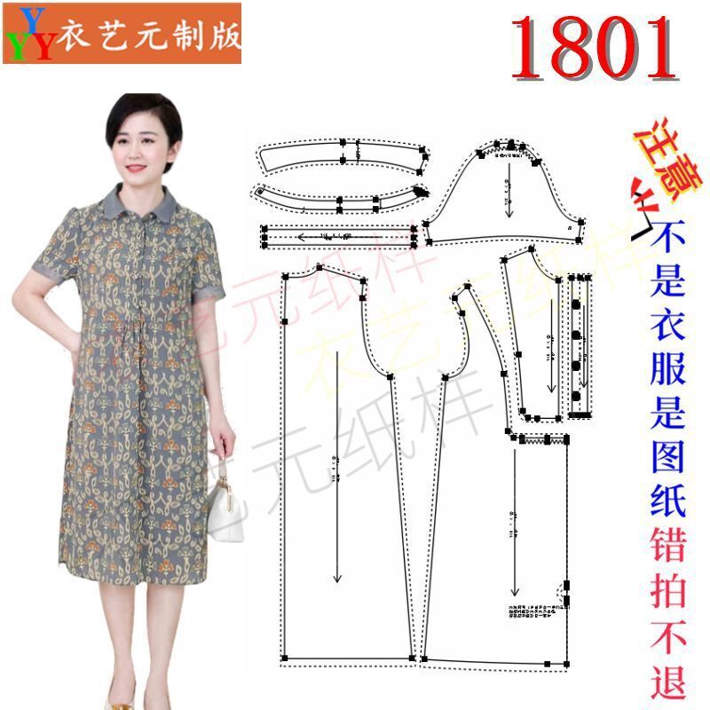 1801 衣装切断図面サンプル新しい中年ママサマードレスレディースファッションロングスカート婦人服