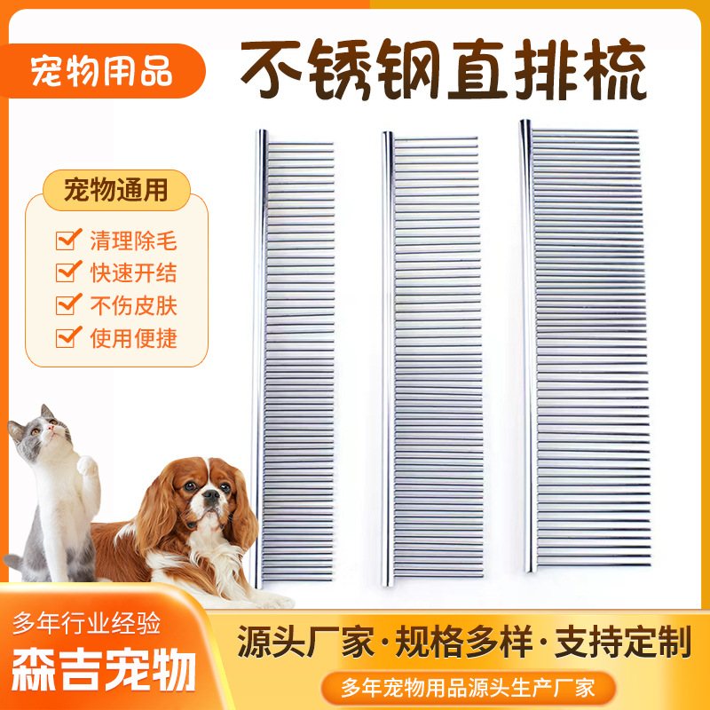 ステンレスストレート櫛猫犬開結櫛ペット歯列櫛猫密櫛犬美容鋼櫛清潔櫛