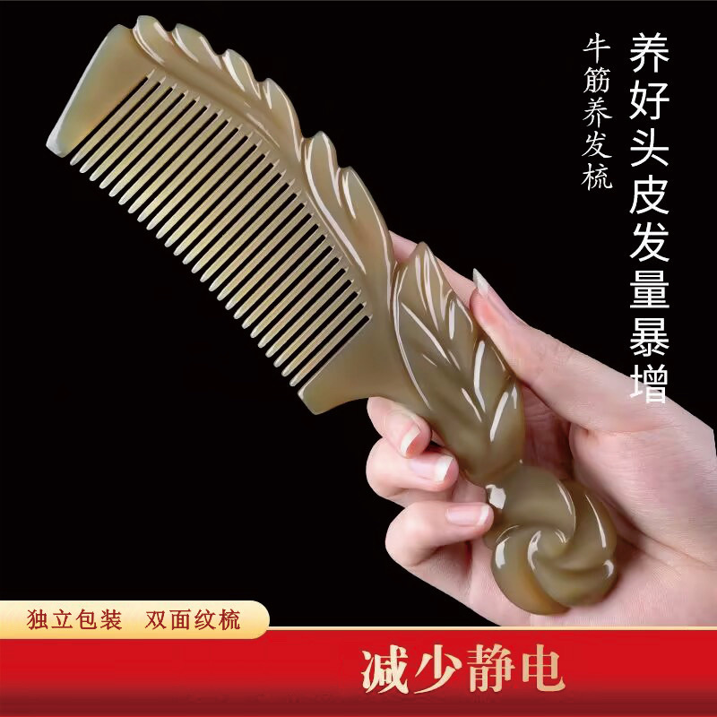 新型天然緑紋牛筋櫛経絡マッサージ櫛薔薇精雕さん専用長髪耐久家庭用櫛
