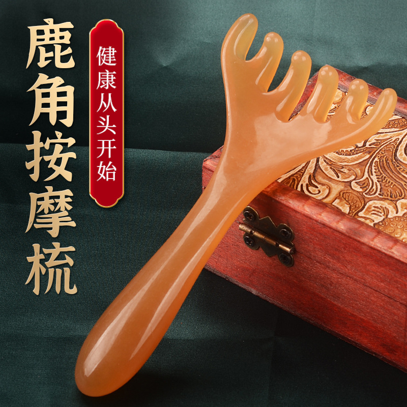 ヘッドマッサージャー 5本爪ヘッドセラピーコーム マッサージ爪マッサージ経絡コーム 樹脂ポイントスクラッチ頭皮マッサージ 鹿の角