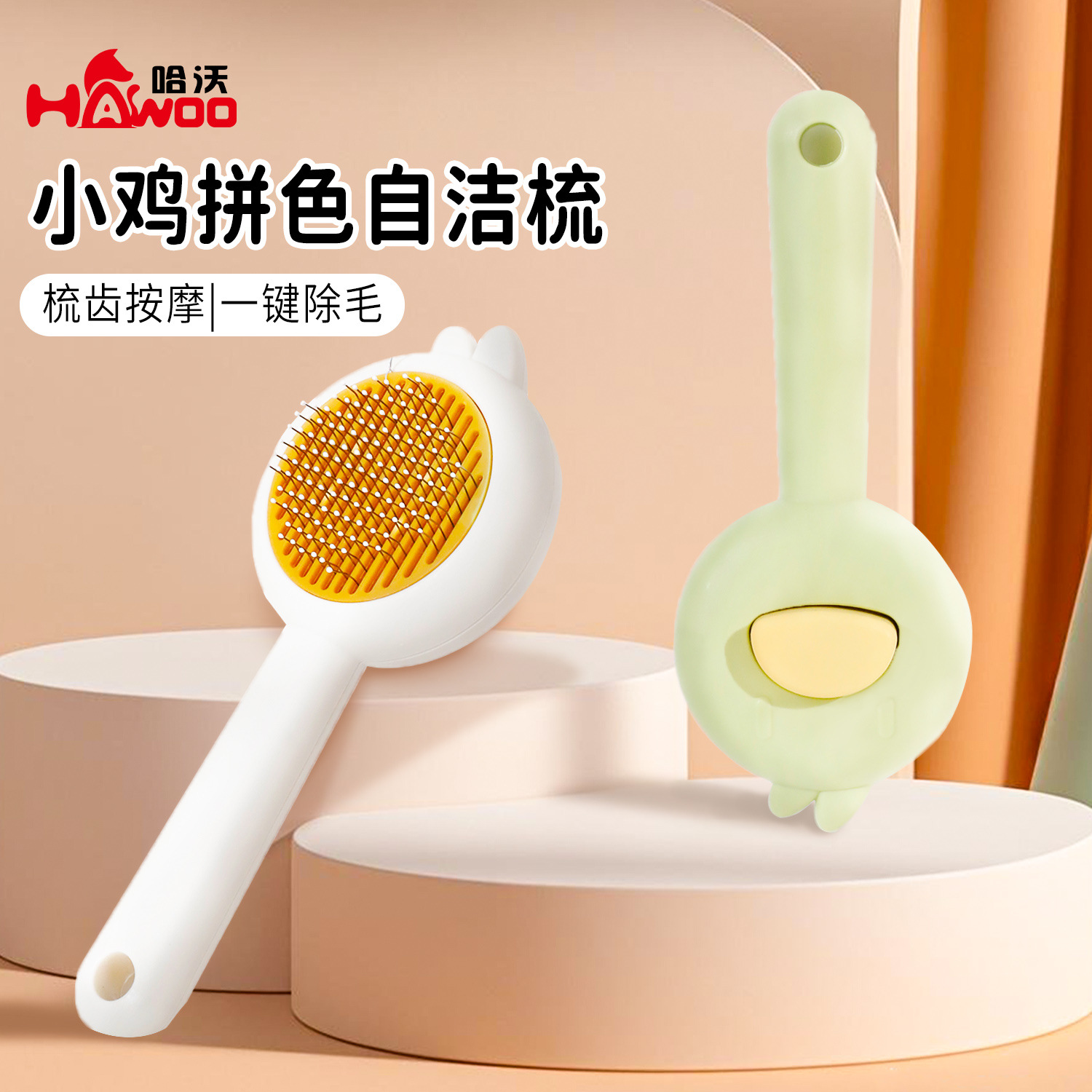新型ペット猫用コーム卸売 ステンレス製のもつれ解消針コーム カラーブロックデザイン 小型チキン型セルフクリーニングコーム 猫の浮毛除去専用