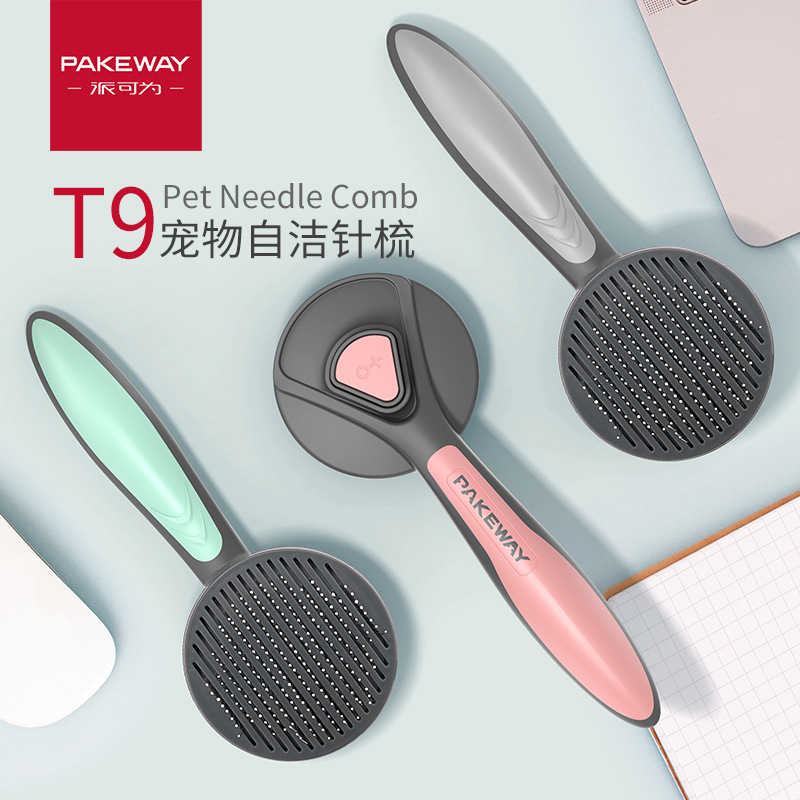 T9ペット用セルフクリーニングコーム、犬猫の毛のもつれ解消、浮毛除去、グルーミング、細かい歯の毛取り針コーム、毛の整理整頓