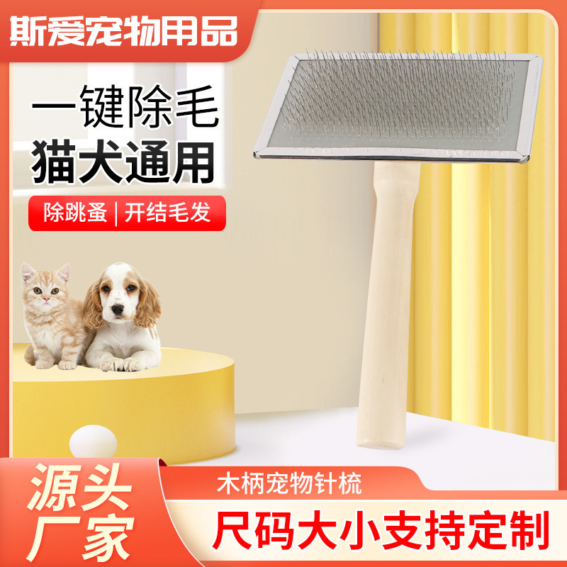 木製ハンドルペットニードルコーム、長毛脱毛、美容ニードルコーム、犬猫ペットノットコーム、マッサージクリーニング家庭用