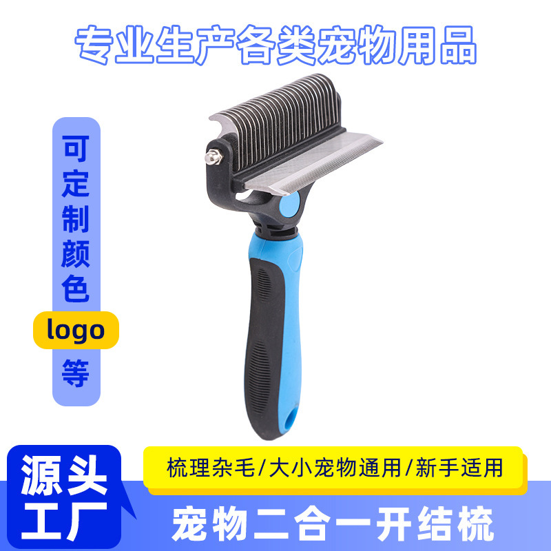 宠物梳子二合一开结梳去浮毛神器不锈钢密齿猫咪脱毛除毛清洁用品