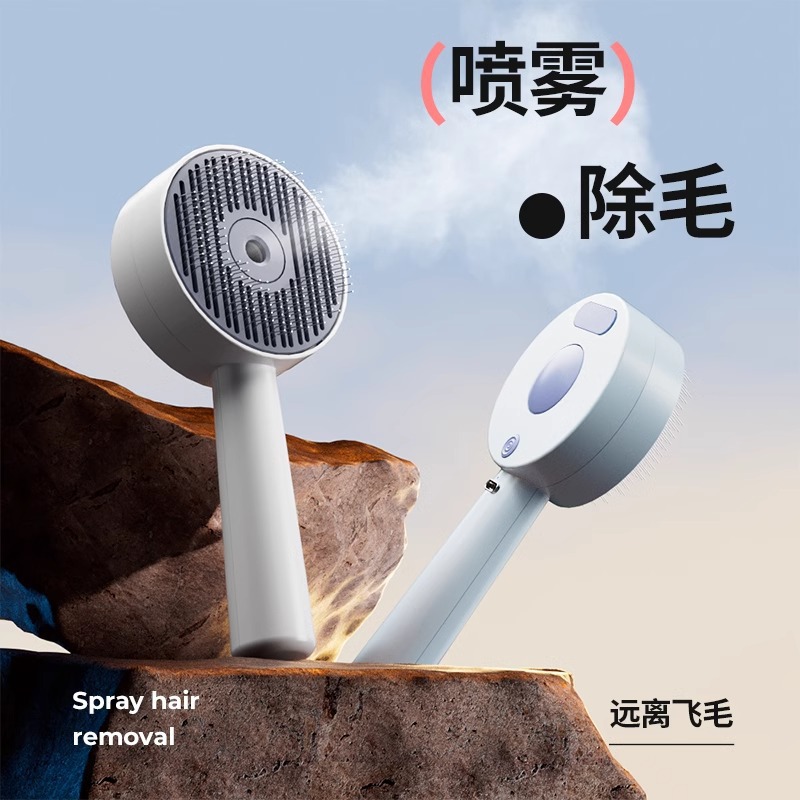 人気のペットスプレーコーム、ワンクリックスプレーブラシ、猫と犬の掃除と脱毛コーム、蒸気飛散防止電気ペット用品