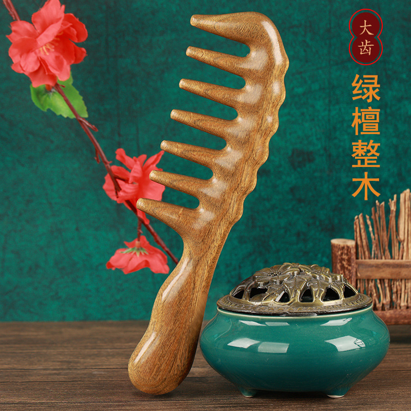 マッサージコーム大型厚みのある天然グリーンサンダルウッドコームヘッド経絡コーム男性と女性のための大きな広い歯のコーム