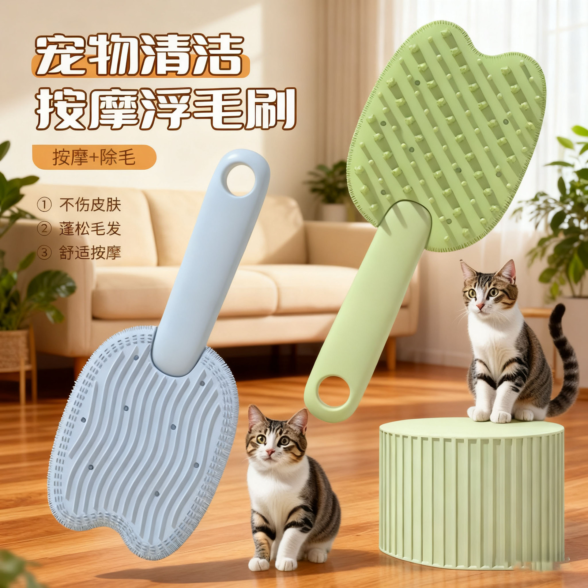 猫マッサージコーム、ハンドヘルドペットバスブラシ、浮き毛を除去するクリーニングブラシ、ワンクリック脱毛、メーカー卸売
