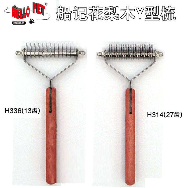 Hello Pet Boat Note Y字型コーム ペット犬底毛削り 死んだ毛や結び目を除去 ゴールデンレトリバーボーダー 13/27歯