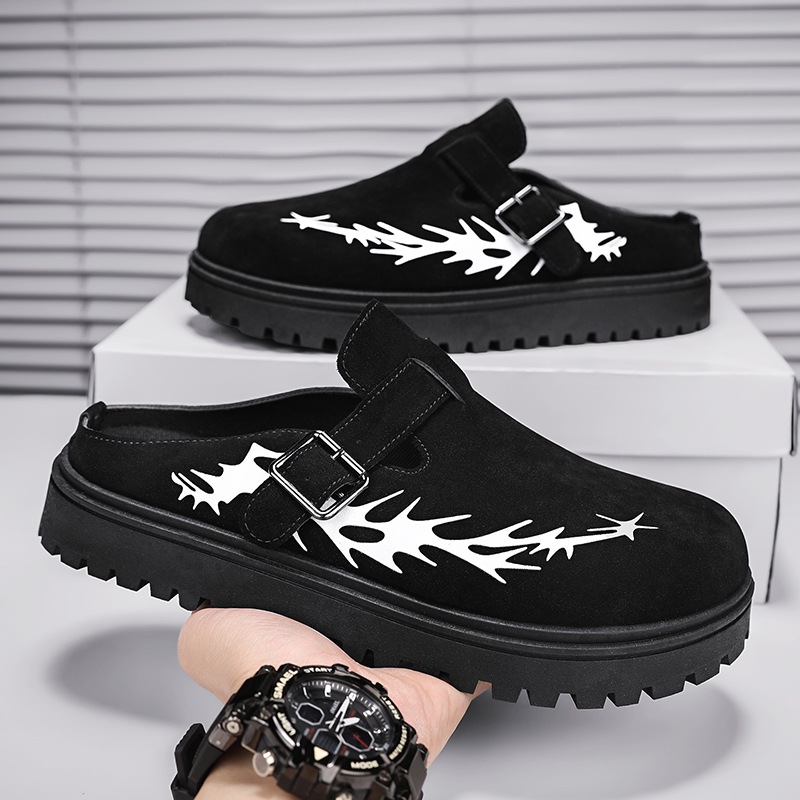2025 新しい男性用ホールインザウォールスリッパ、通気性、滑り止め、つま先を包み込む、韓国スタイル、怠け者防止、スリッポン、ハーフスリッパサンダル、トレンディな靴