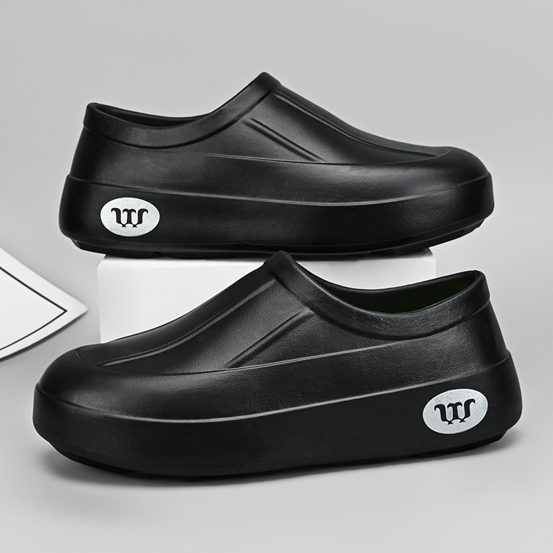 男性用滑り止めシェフシューズ、防水・耐油キッチンワーカー専用シューズ、EVA軽量ワンステップレインブーツ、作業用安全靴