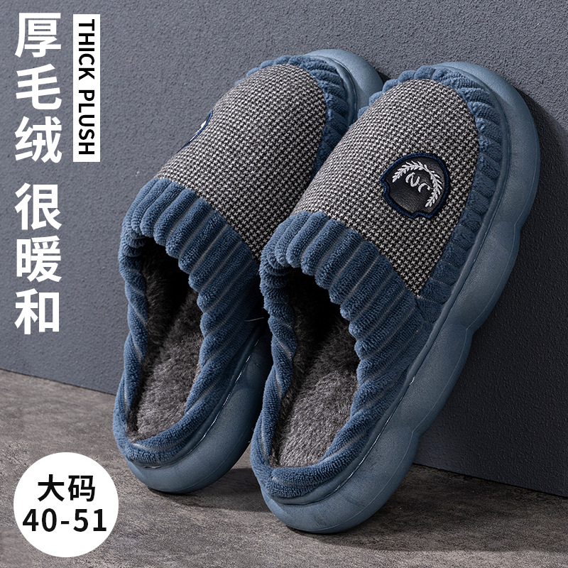 冬の綿のスリッパの男性の特別な大きいサイズの2024新型の家庭用の室内の滑り止めの保温の綿の靴とベルベットの厚い底
