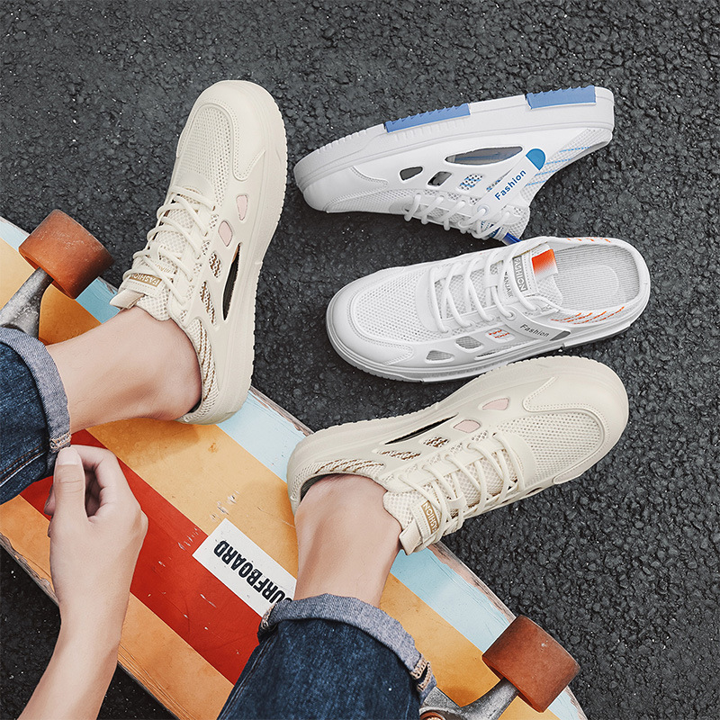 2025夏の新型の半托の男性の板の靴の1足の半牽引のネットの表面の通気性の怠け者のレジャーのキャンバスの潮の靴