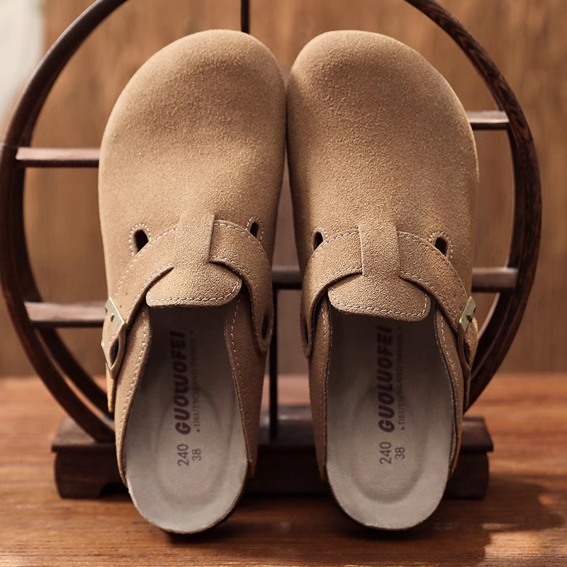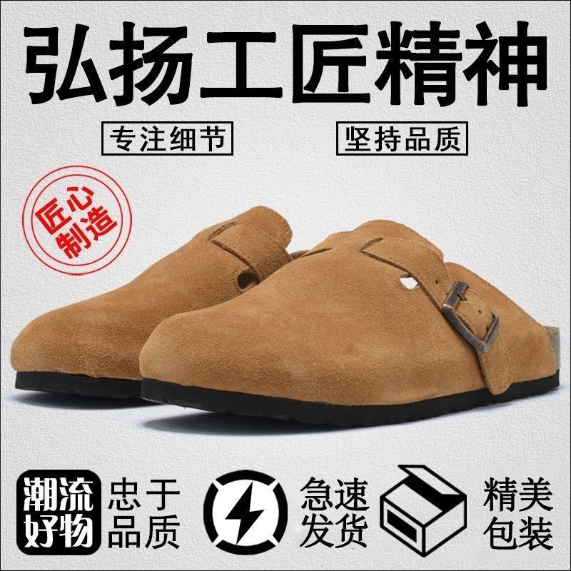現物BK本革質ベーケン靴包頭半引きBustonサンダル男女同金コルク博ケン靴カップル