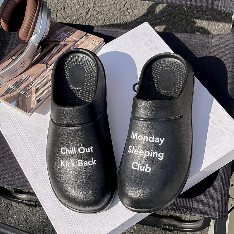 馬登2025の新型コック靴男性は夏の外で黒い半托の厚い底の穴の靴を着て、水包頭のスリッパに行きます。