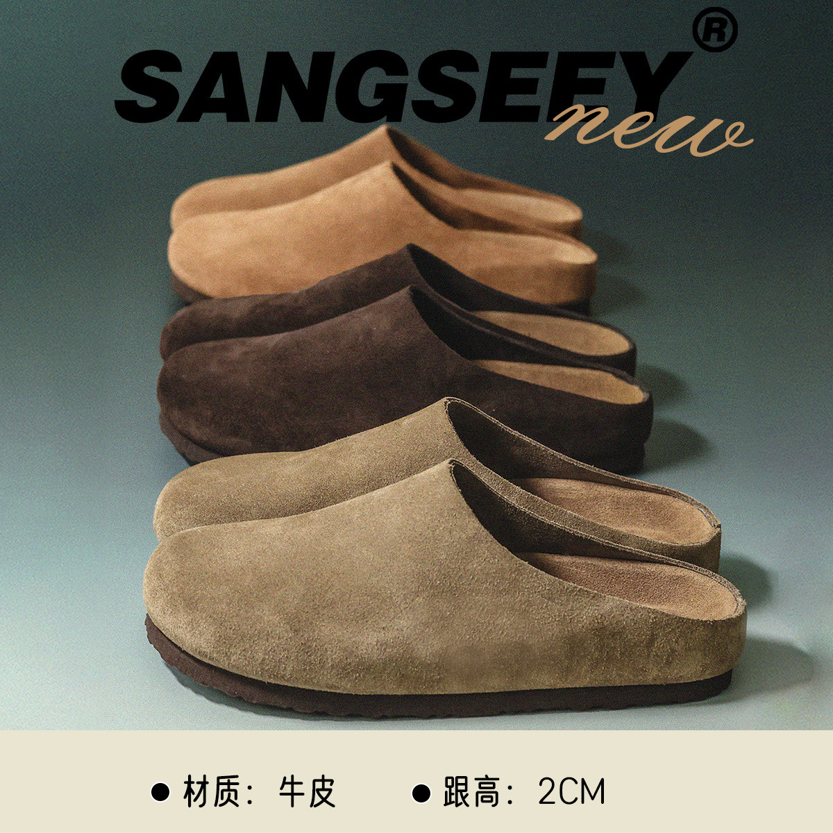 フロスト羊皮包頭半スリッパ男性快適カジュアル反絨面包頭は本革の平底半牽引楽福靴を引っ張る
