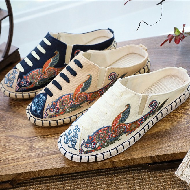 新しい古い北京布靴男性手作り春夏家刺繍千層布底民族風包頭半包スリッパ